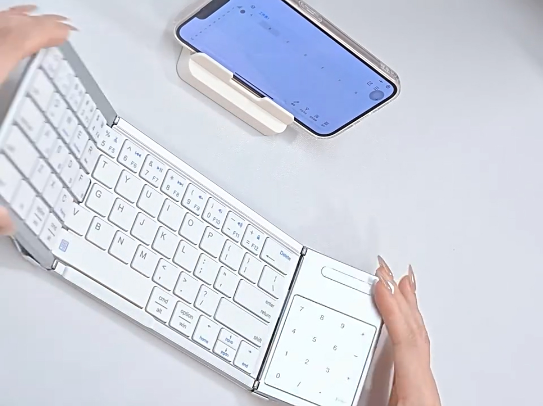 This keyboard is compact and lightweight, perfectly compatible with iOS, Android, and Windows phones and laptops via Bluetooth. It has a rechargeable lithium battery and folds to slightly larger than the size of a loaf of bread. Its design is stylish and sleek, making it ideal for travel and business trips. It’s the perfect alternative to difficult-to-use phone keyboards.