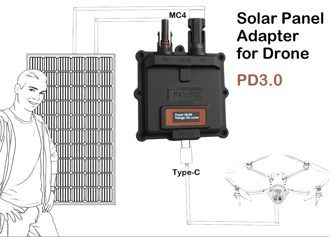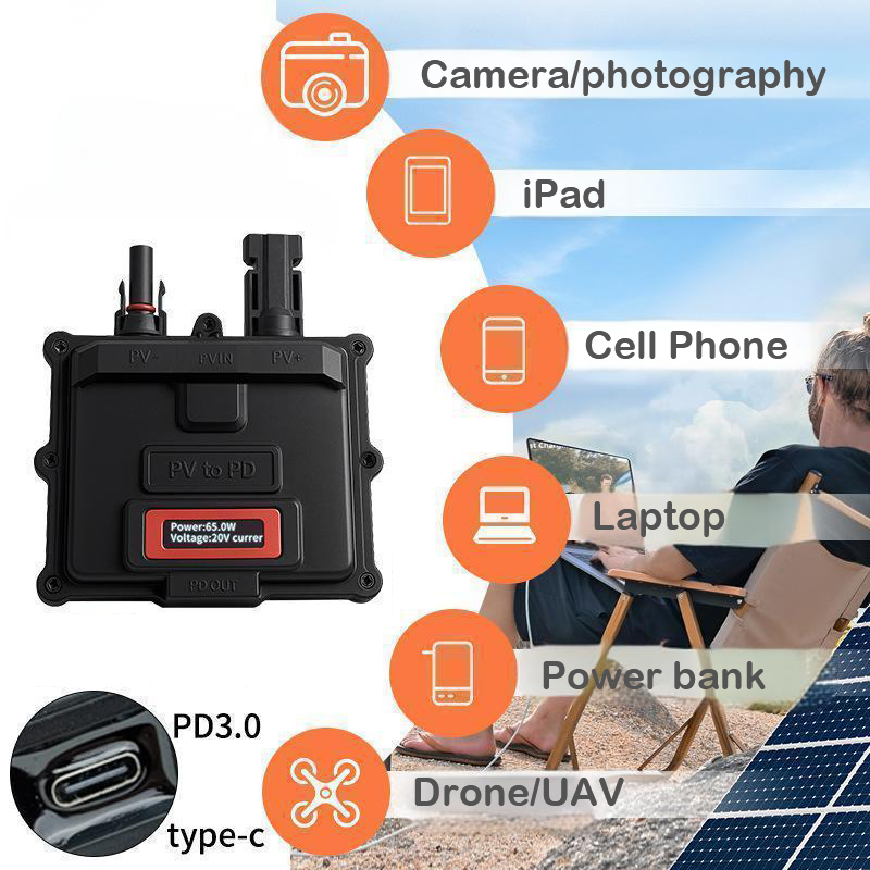 65W Solar Panel Adapter for Drone Laptop,Power Bank PD3.0 Fast Charging,Solar PV Panel Charger MC4 to PD